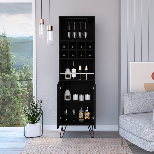 H Bar Cabinet Silhill, Eight Wine Cubbies, Two Cabinets With Single Door, Black Wengue Finish