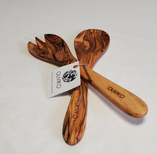 Handmade Olive Wood Utensils Salad Servers 9.5 inch