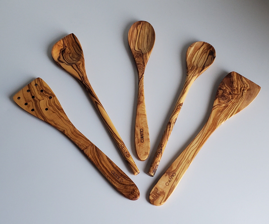 Handmade Olive Wood Utensils Kit of 5 Utensils 2 Spatula + 3 Spoon 100% Olive Wood