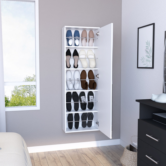 Wall Mounted Shoe Rack With Mirror Chimg, Single Door, White Finish