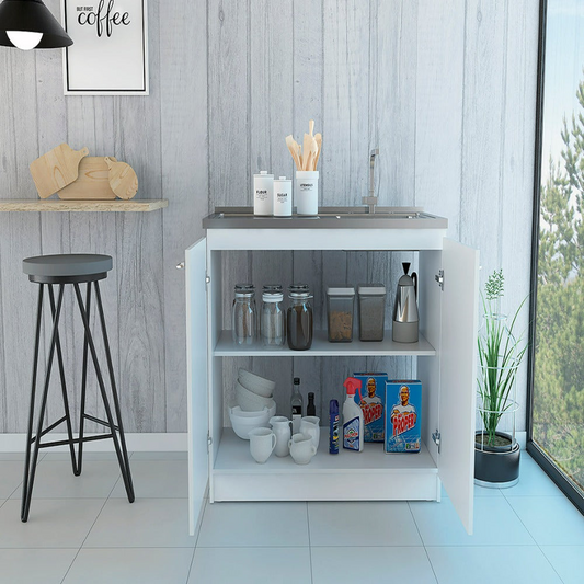Wall Cabinet Toran, Two Shelves, Double Door, White / Light Oak Finish
