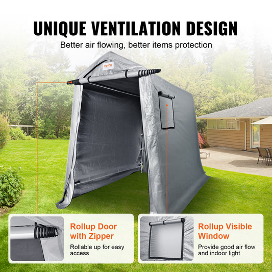 VEVOR Portable Shed Outdoor Storage Shelter, 6 x 8 x 7 ft Heavy Duty All-Season Instant Storage Tent Tarp Sheds with Roll-up Zipper Door and Ventilated Windows For Motorcycle, Bike, Garden Tools