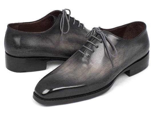 Paul Parkman Goodyear Welted Wholecut Oxfords Gray Black Hand-Painted (ID#044GRY)