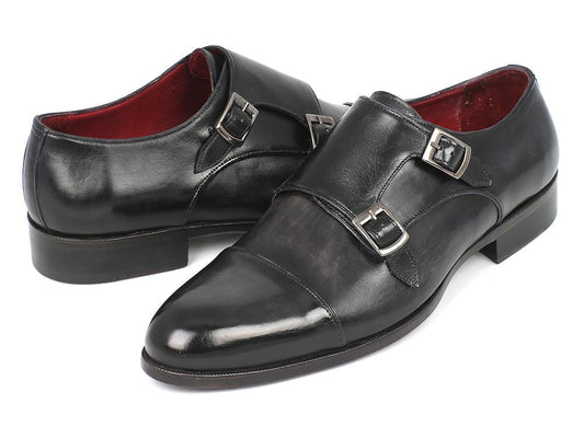 Paul Parkman Men's Cap-Toe Double Monkstraps Gray & Black (ID#0457-GRY)