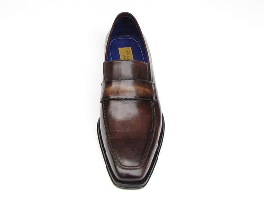 Paul Parkman Men's Penny Loafer Tobacco & Bordeaux Hand-Painted Shoes (ID#067-BRD)
