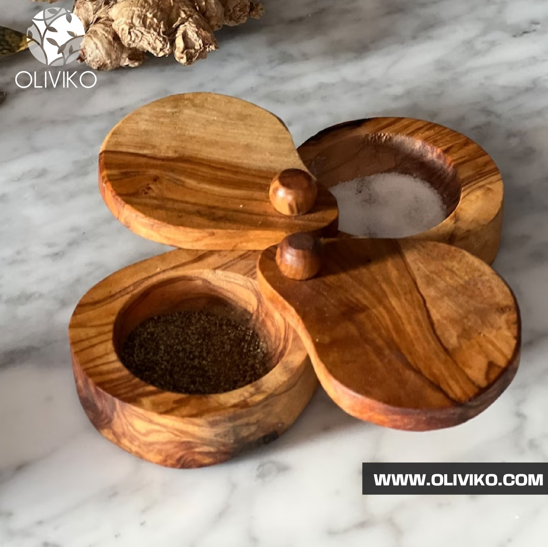 OLIVIKO olive wood Salt and Pepper Box. It is made just for you to add a touch of elegance to your kitchenware and table. This is a hand-crafted product made from a single block of olive wood. 100% handmade with 100% Of Mediterranian olive wood with unique grain patterns. This Salt and Pepper Box will add a touch of art to your kitchen.