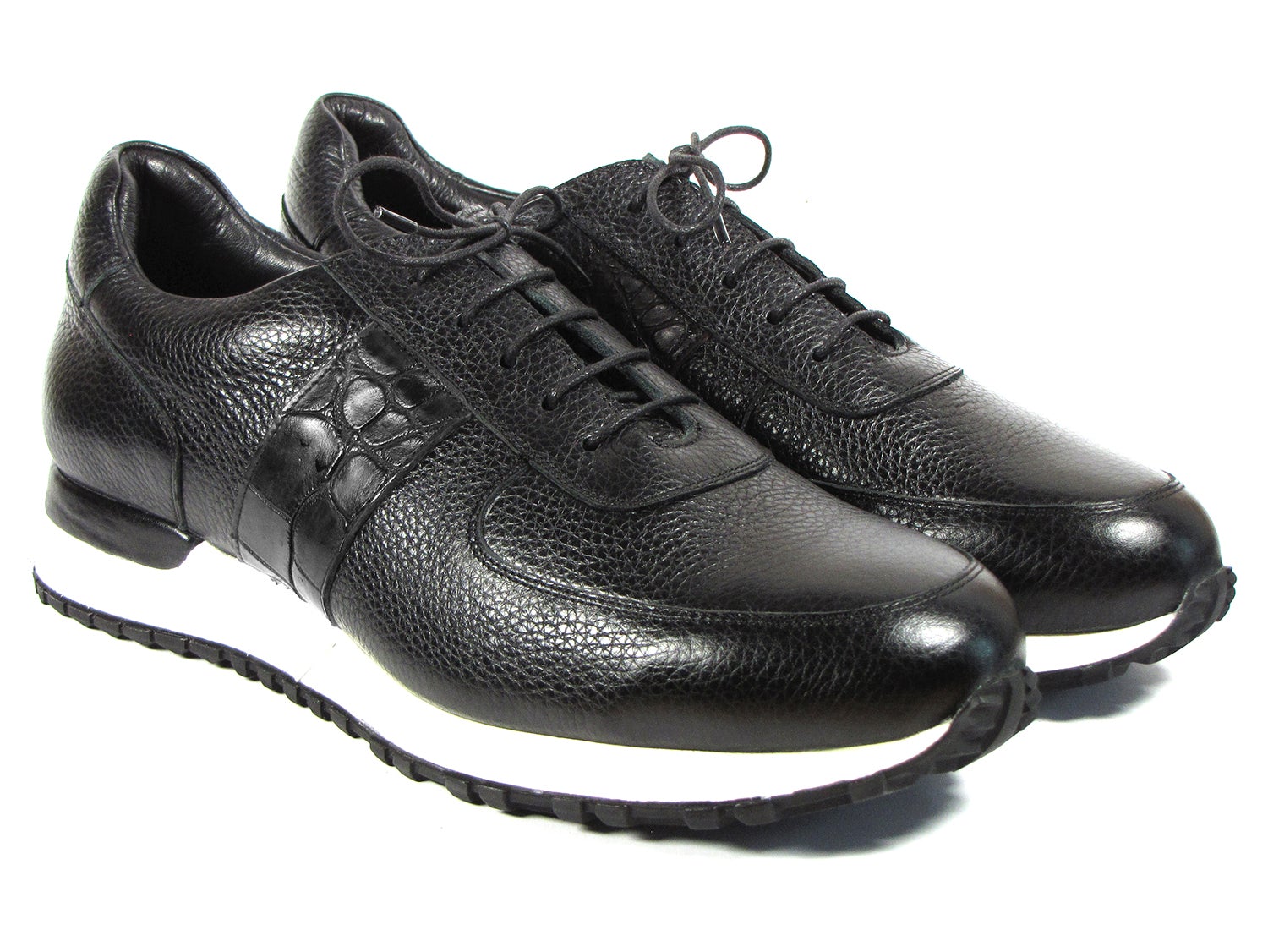 Paul Parkman Men's Black Floater Leather Sneakers (ID#LP206BLK)