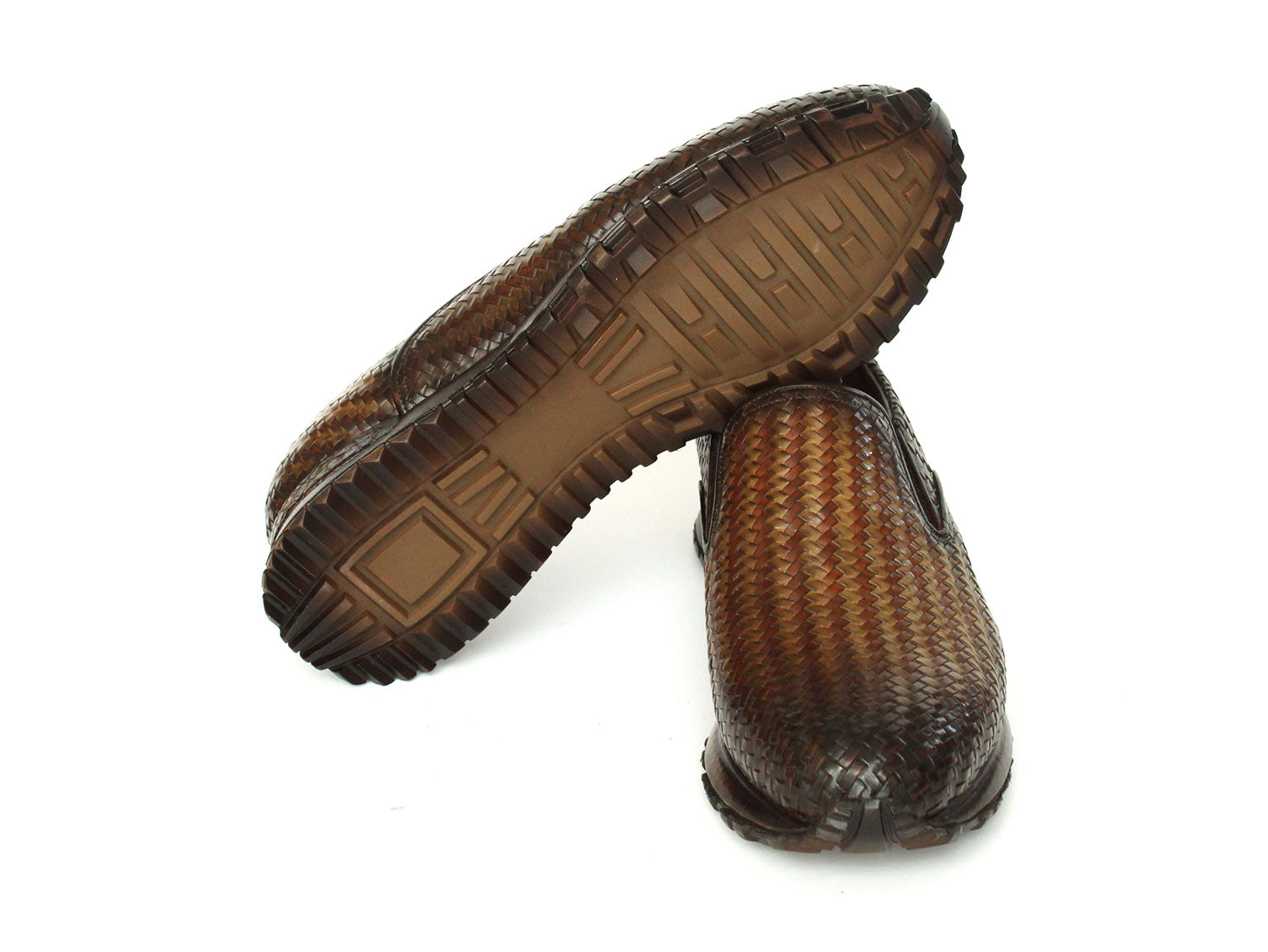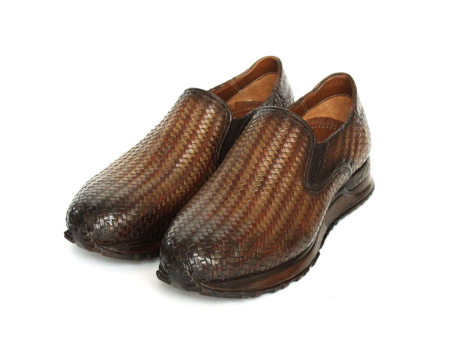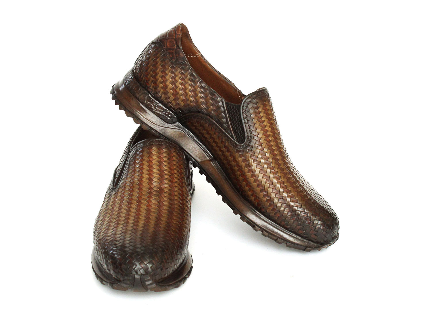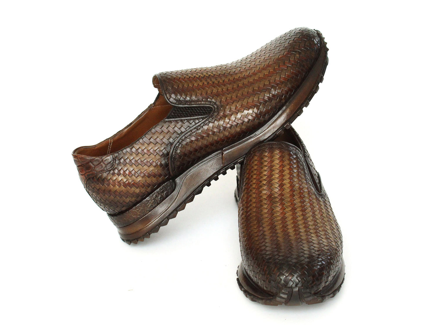Paul Parkman Men's Brown Woven Leather Slip-On Sneakers (ID#LW204BRW)