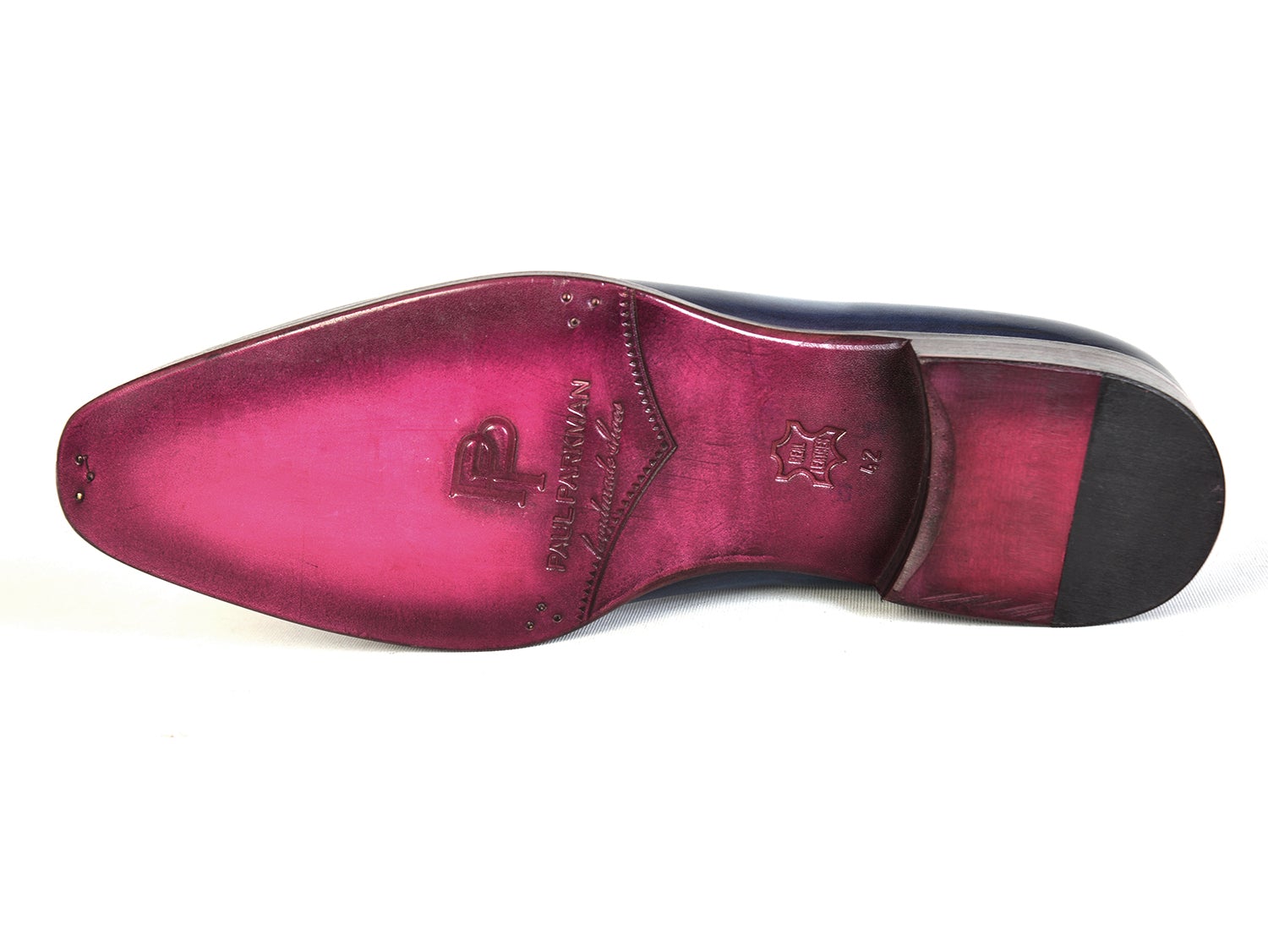 Paul Parkman Men's Plain Toe Wholecut Oxfords Blue Hand-Painted (ID#755-BLU)