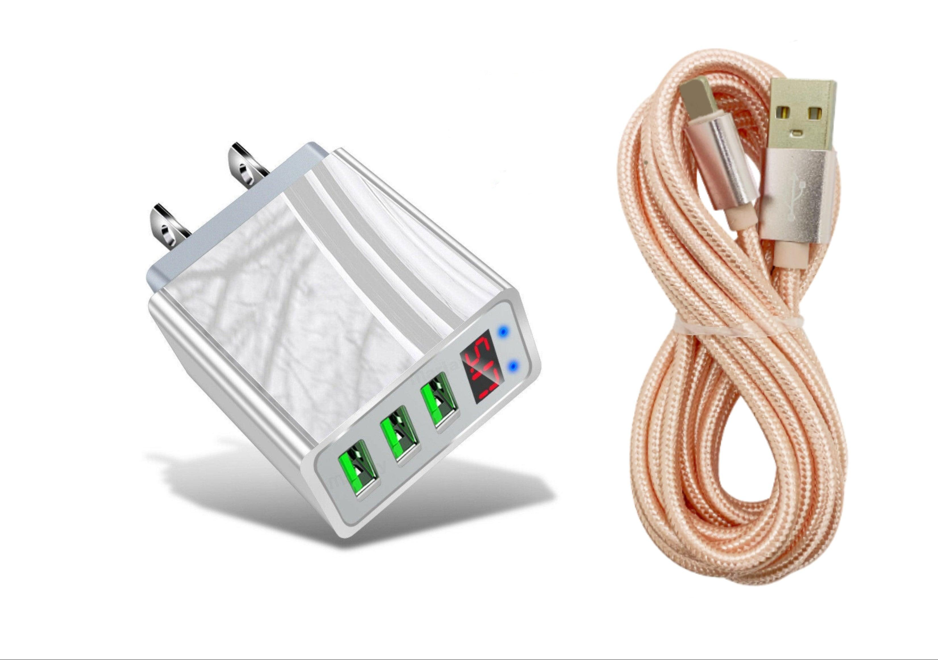 QC3.0 Multi-Port Universal Wall Charger and 10FT XL Charger Compatible for Iphone Cable Combo