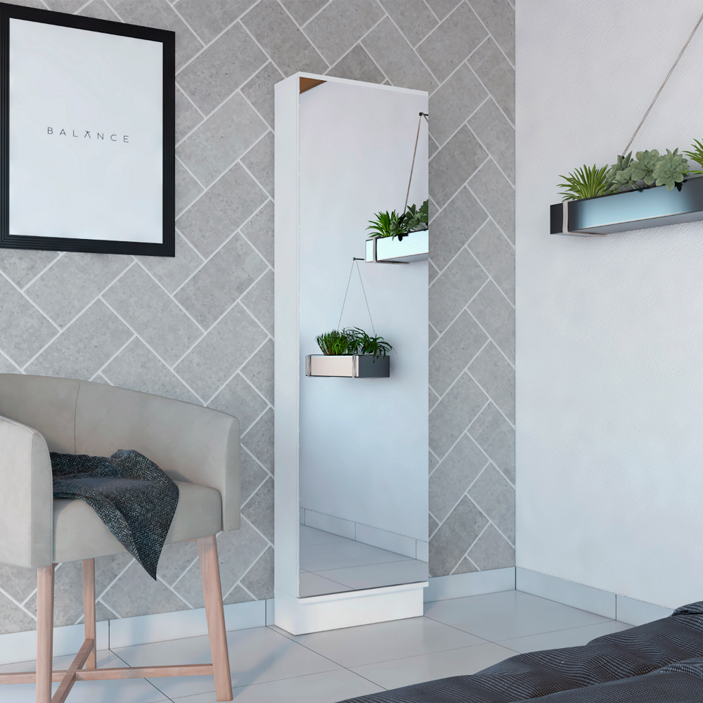 Shoe Rack Chimg, Mirror, Five Interior Shelves, Single Door Cabinet, White Finish