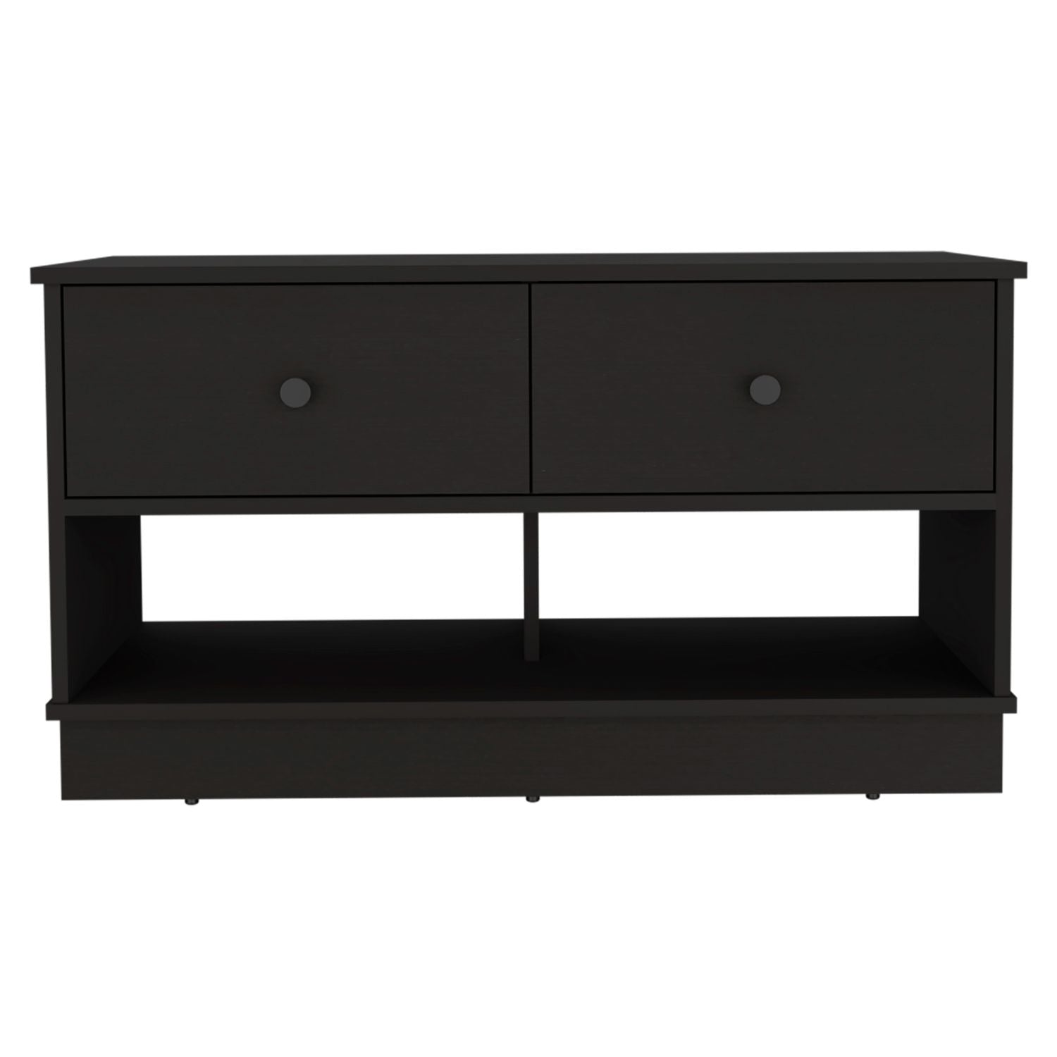 Storage Bench Beji, Lower Shelf, Two Drawers, Black Wengue Finish