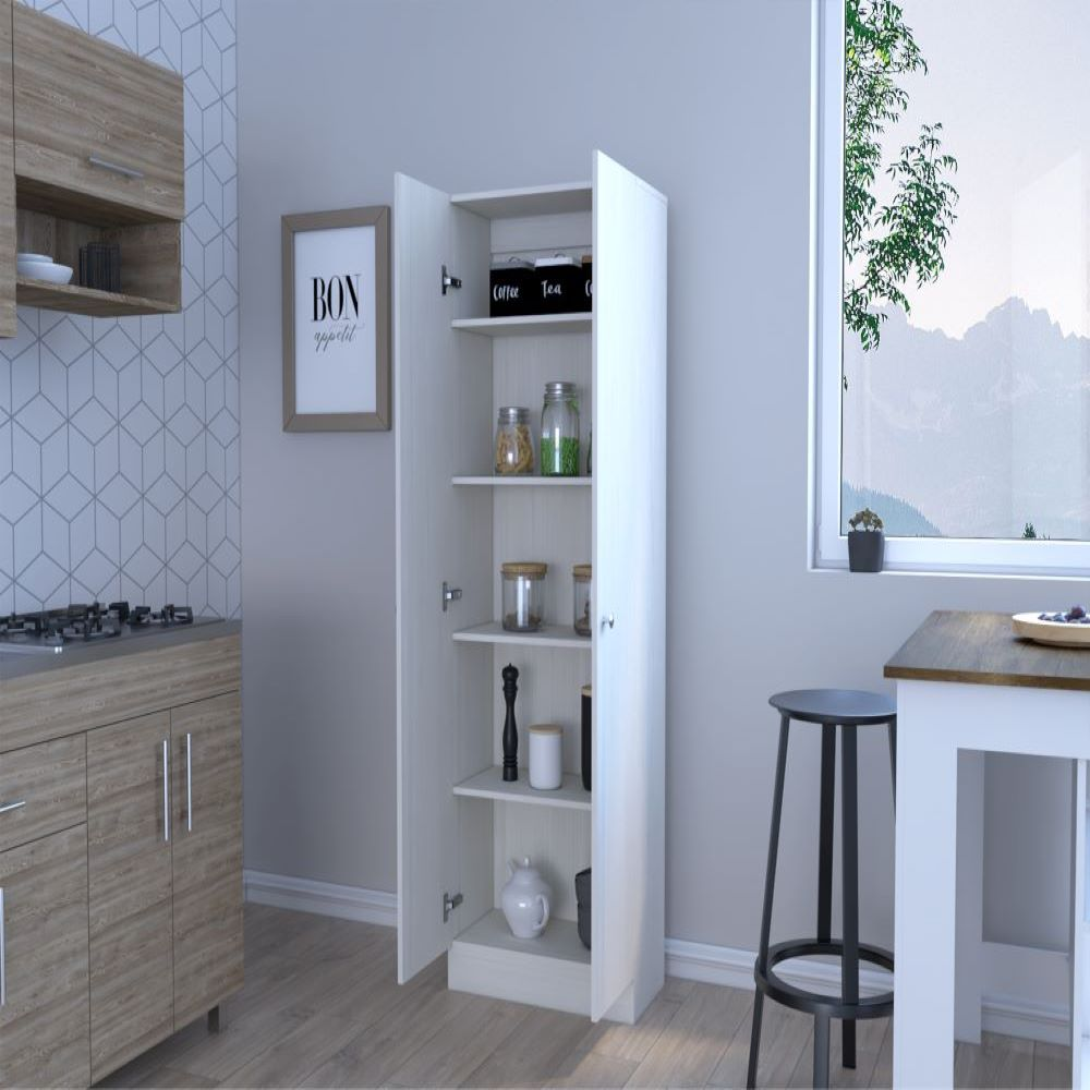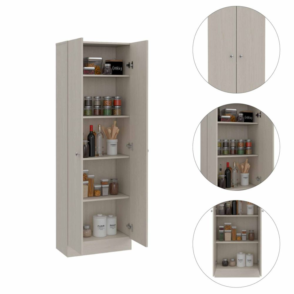 The Pipestone Storage Cabinet is perfect for use in the kitchen, bedroom, living room, office, or any other room that would need a large storage unit. All metal doorknobs and hinges provide an all-around better quality product. Functionality and style work in perfect harmony.70" high storage cabinet with extra storage, perfect for covering your storage needs in a garage, utility room, living room, or kitchen, five spacious 12.9" high interior shelves, easy to assemble, designed with white manufactured wood.