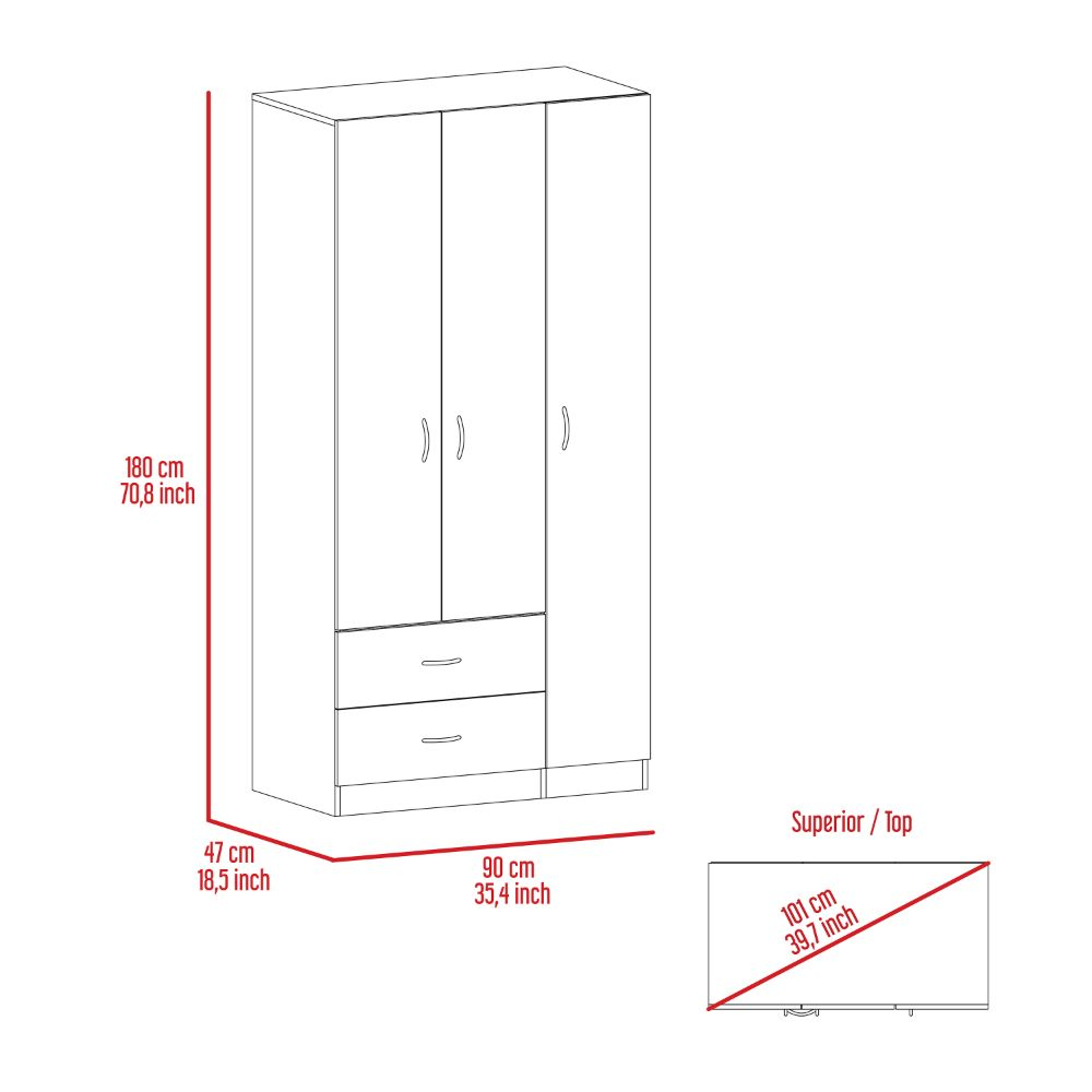 Three Door Armoire Clark, Metal Rod, Light Oak / Black Wengue Finish