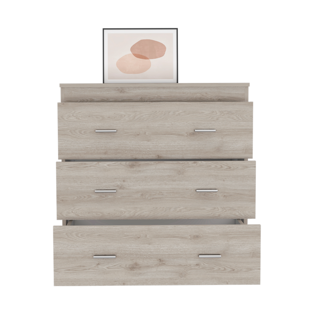 Three Drawer Dresser Whysk, Superior Top, Handles, Light Gray / White Finish