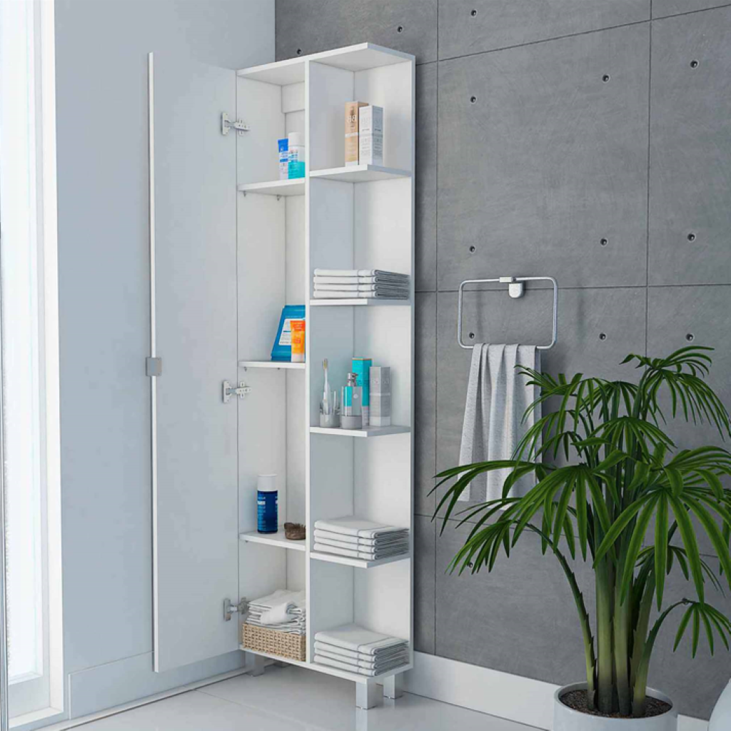Venus Mirror Linen Single Door Cabinet, Five External Shelves, Four Interior Shelves