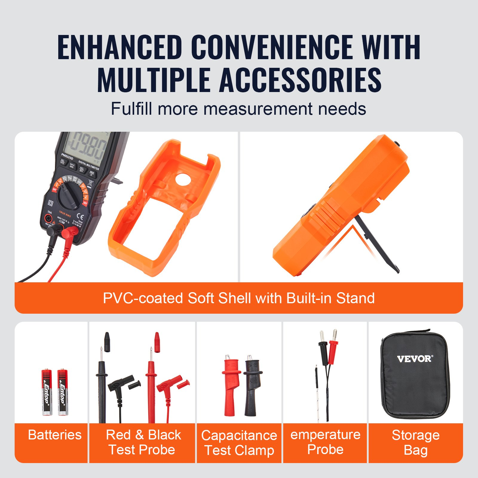 VEVOR Digital Multimeter, 6000 Counts, Multimeter Tester DC AC Voltmeter NCV, Ohm Volt Amp Tester, for Voltage Current Resistance Capacitance Continuity Diode Temperature Duty Ratio Frequency TRMS