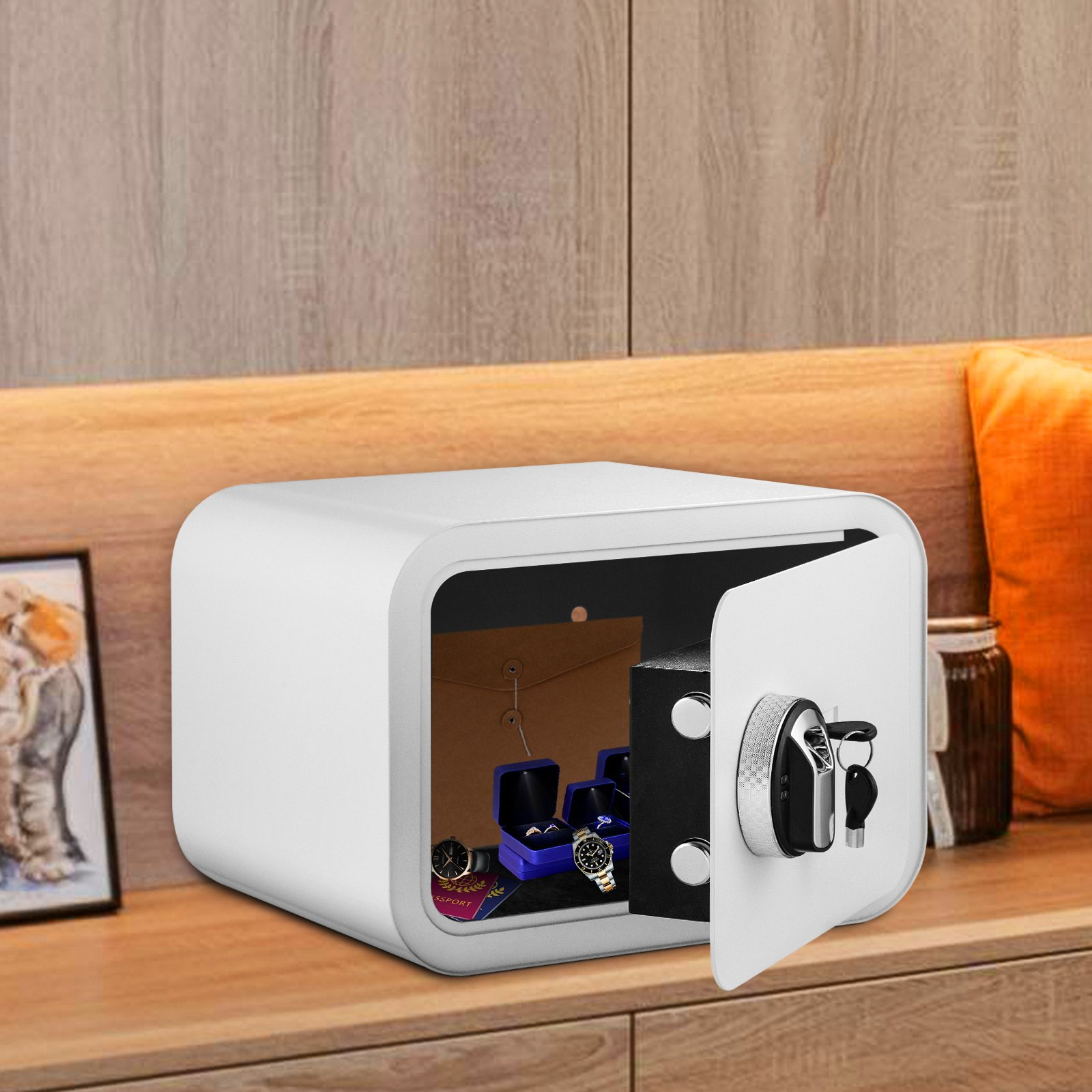 VEVOR Safe Box, 1 Cubic Foot Money Safe with Fingerprint Lock and Key Lock, Alloy Steel Home Safes with 2 Keys, Wall-Mounted Security Safe for Cash, Watch, Jewelry, Passports, Documents (White)