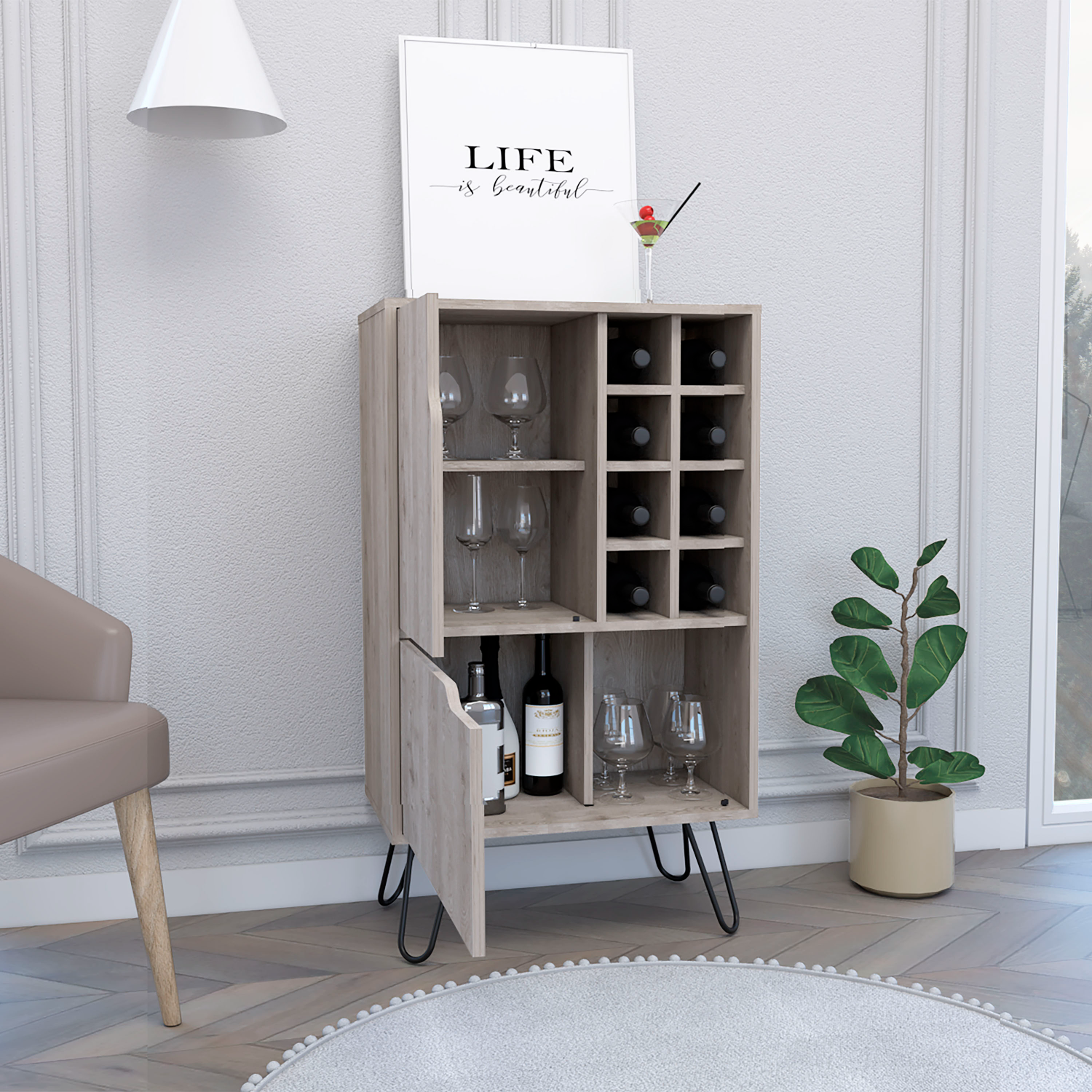 Zamna L Bar Single Door Cabinet, Eight Wine Cubbies